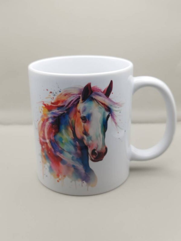 Laissez-vous emporter par la beauté et la puissance de ce mug cheval coloré, imprimé en sublimation artisanale pour un rendu éclatant et durable.