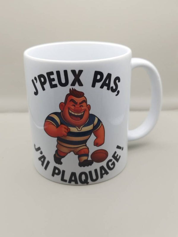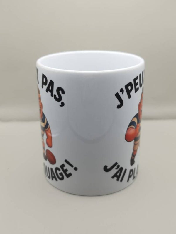 Mug rugby “J’peux pas, j’ai plaquage !”