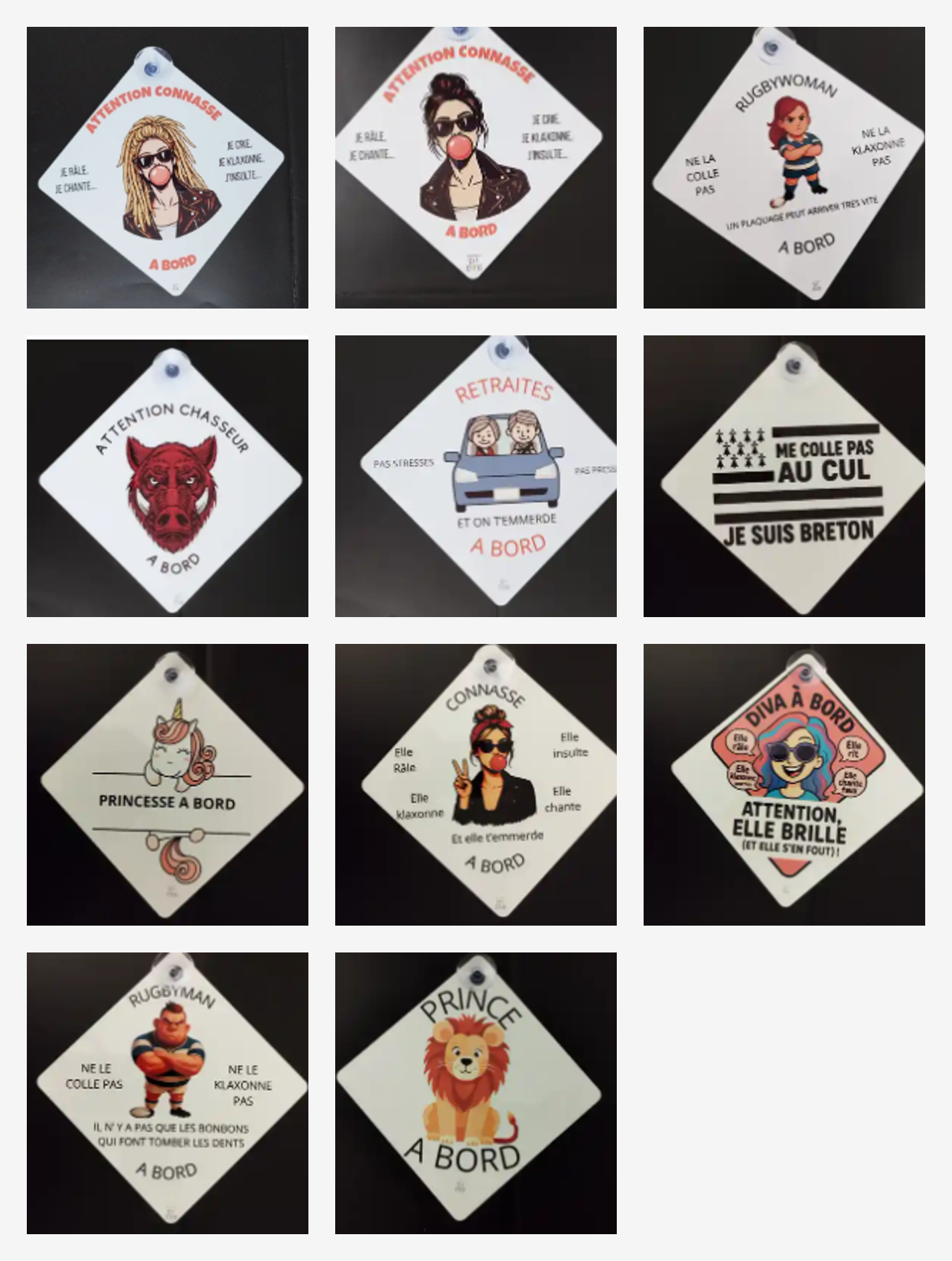 Pancarte voiture humoristique – Plusieurs modèles